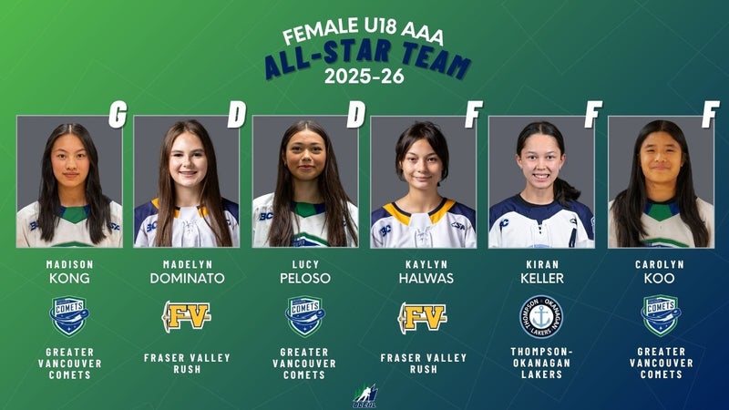 Saanichton, B.C. - The British Columbia Elite Hockey League (BCEHL) is excited to announce the all-star teams for the 2025-26 season in the Female U18 AAA, U18 AAA, U17 AAA and U15 AAA leagues. The all-star teams are selected based off of regular season performance.